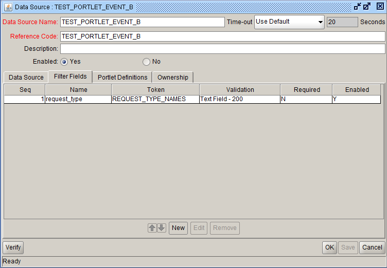 The following images provide details about the data source and portlet configuration used to build portlet communication between two portlets using portlet events.
