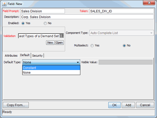 If you specified a constant default type, then in the Visible Value list, select the constant value.
