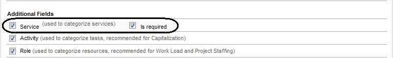 The Project Fields page opens. The Service checkbox setting becomes available.