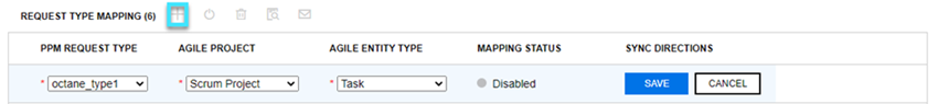 - The PPM request -> New Agile entity sync direction is enabled for the mapping.