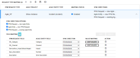 - The Agile entity -> New PPM request sync direction is enabled for the mapping. For details, see Map PPM request types to ServiceNow entity types.