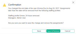 In the pop-up warning window that informs you which staffing profiles will have invalid assignments removed, click Save & Remove.