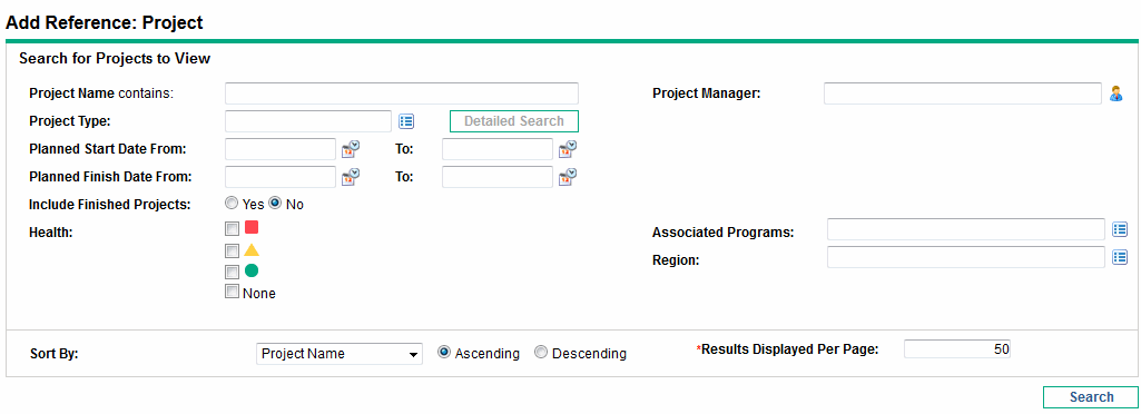 Provide your search criteria in one or more of the available fields, and then click Search.