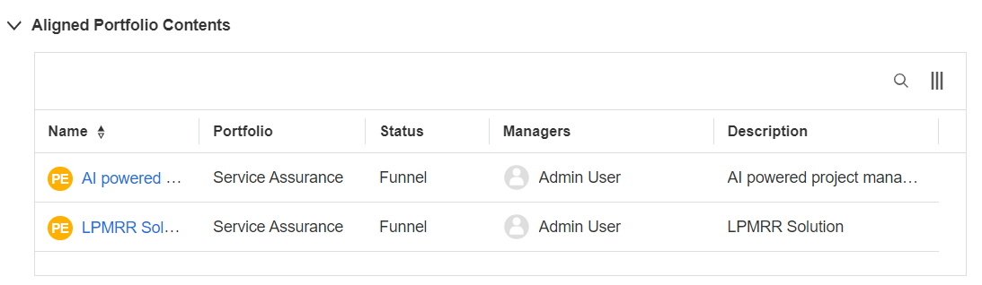 The Aligned Strategic Theme column in the Backlog tab displays the strategic themes with which each of the portfolio contents is aligned. It indicates whether your portfolio items are aligned with a higher-level or global strategy.
