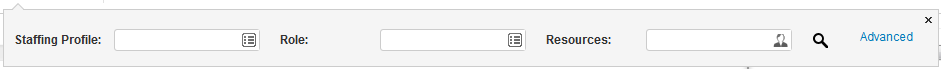 and then Advanced if you want to use filters other than Staffing Profile, Role, and Resources.The Search for Staffing Profile Positions dialog displays.