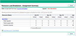 The Resource Finder allows you to view a breakdown table of selected resource load similar to the table accessed from the Analyze Assignment Load page.