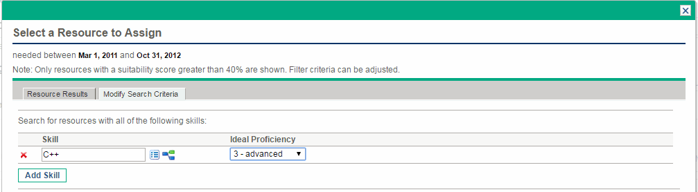 Modifying Skill Criteria for Resource Searching