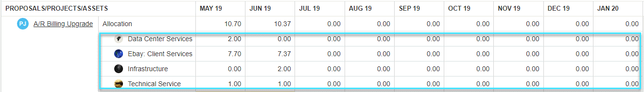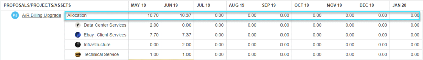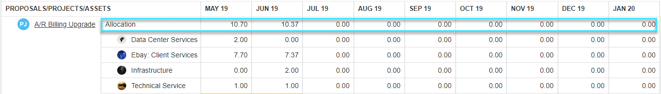 For example, during a specific time period, Proposal A has no allocation, but has demand from the team. In the Project view, if you only select the Allocation filter, Proposal A is not listed. If you select the Allocation and Demand filters, Proposal A is listed.