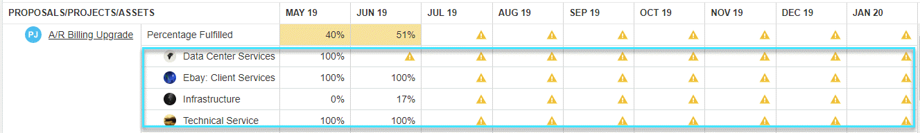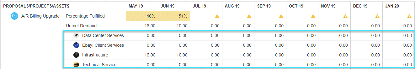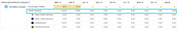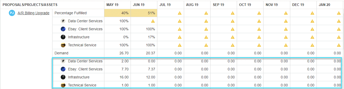 Project view. Help analyze whether the demand resource from entities (projects, proposals, and assets) are fully fulfilled by your team.