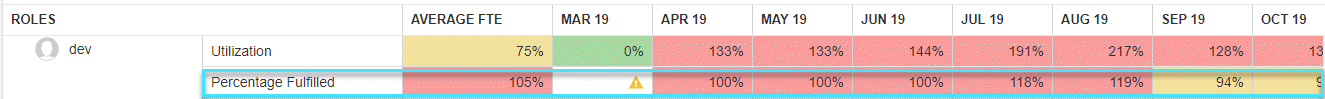 = Allocation / Demand Fulfilment percentage of the team itself and sub-teams that assigned effort to the entity Fulfilment percentage of the team itself = (Allocation from the team self + Allocation from the team's direct resources + Allocation from the team's promises) / Demand |