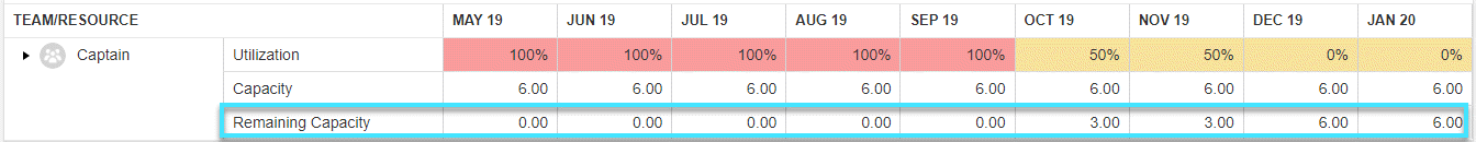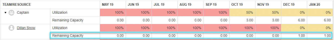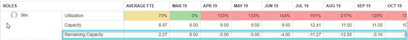 Note: For team resources that do not specify role, their capacity is not counted in this view.