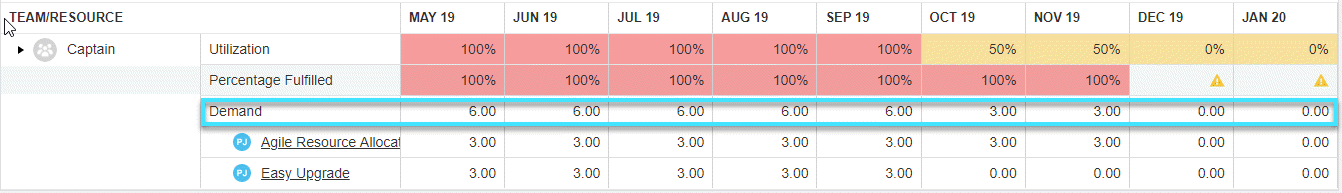 Sum of demand for the team and its sub-teams = Unmet Demand + Allocation Demand is requested for a team, so demand is not applicable to team resources. Which entities require demand from the team and its sub-teams The following entities are not listed here: